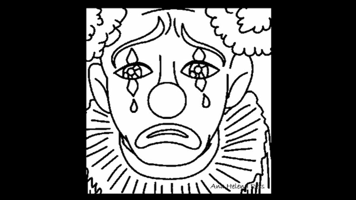 No espelho, iniciou o ritual. Espalhou a base branca, delineou os olhos caídos — reflexo do estado civil com o sono — e arqueou as sobrancelhas como quem diz “não fui eu”. Demarcou o sorriso e, por fim, a lágrima no canto esquerdo, que sempre julgou exagerada, mas o público adorava um dramalhão. Vestiu as luvas, ajeitou a boina e testou o sorriso congelado. Parecia irreconhecível. E ligeiramente ridículo. Perfeito.