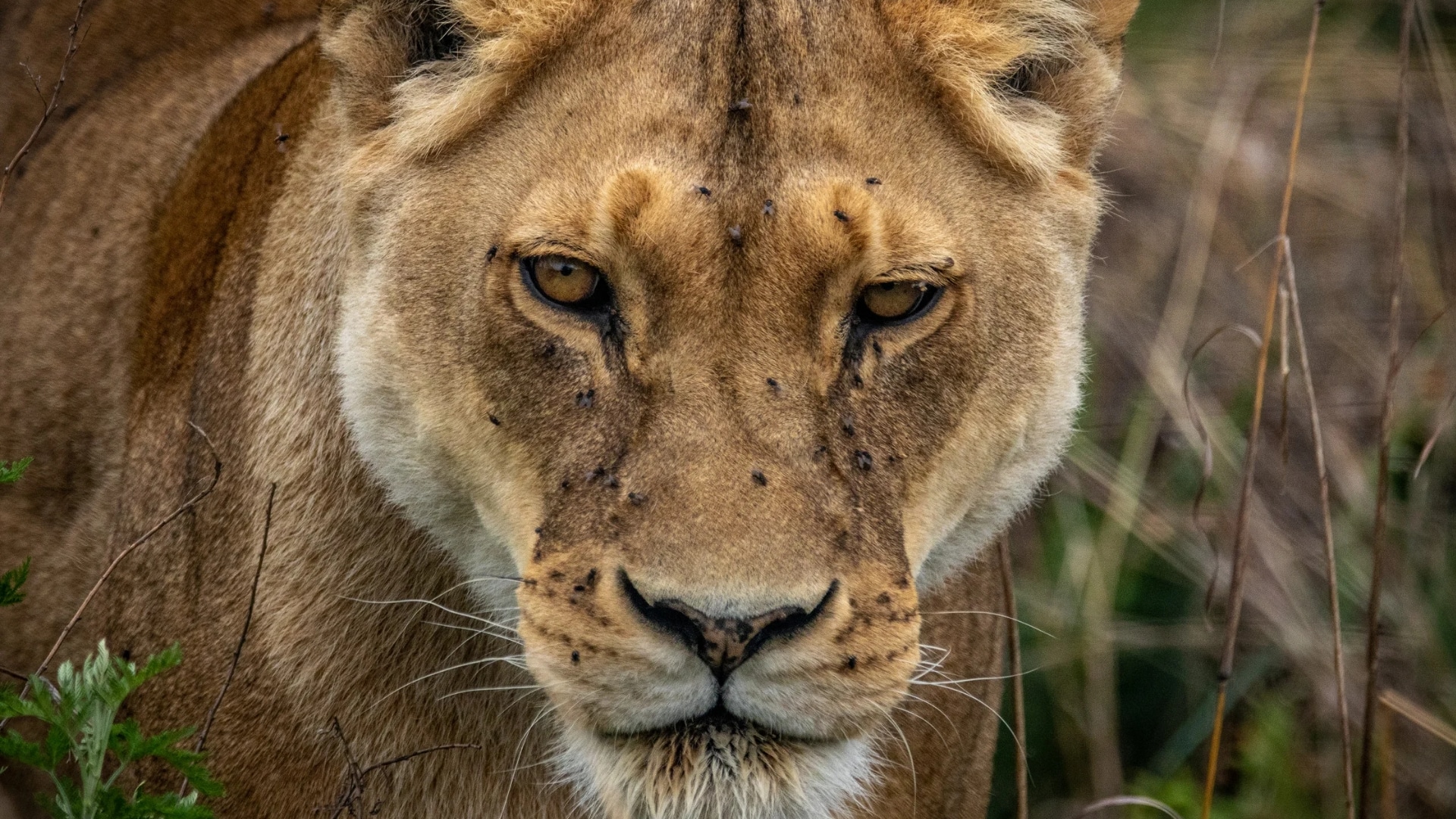 A leoa faz o que uma leoa sabe fazer, observar atentamente e esperar o momento certo para atacar, afinal, o que um leão faz de melhor a não ser atacar com precisão a sua presa?