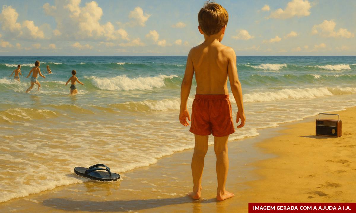 Mas o verdadeiro banquete foi quando o mar apareceu. Imenso, azul, impossível. E justo no instante em que meus olhos de menino se perderam naquele horizonte de sal, tocou no rádio: “Não adianta fugir, nem mentir pra si mesmo agora… há tanta vida lá fora… e aqui dentro, sempre… como uma onda no mar.” Lulu Santos e Nelson Motta. Não foi no primeiro dia, foi no segundo. Mas foi como se fosse a primeira vez que eu visse qualquer coisa no mundo.