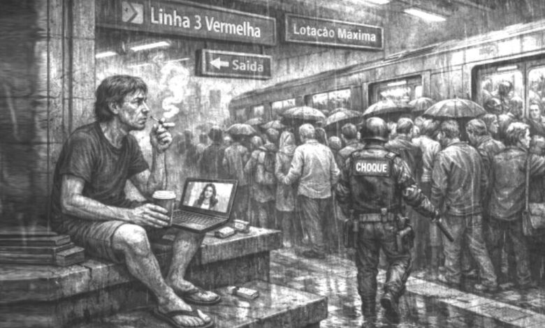 O Zé Preto se acomodou, ajeitando o cobertor. O Espanhol deu um puxão: — Esse cobertor é meu. O Zé Preto empurrou o outro com a bunda. Riram. — Vai tomar no “cu” — um disse para o outro. E riram. Passou um carro numa poça e jogou água nos dois. — Vai se