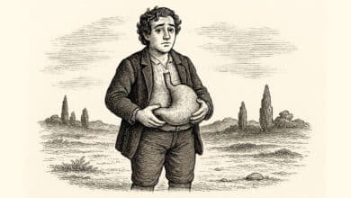 Quase morto de sede, o homem implorou ao céu por chuva, mas não caiu uma gota. Olhou pra cima e não viu uma só nuvem, só luz e azul. Rogou uma praga. Perambulou pela estrada poeirenta, o sol na cabeça. Viu algo no meio do caminho: uma escultura de madeira que