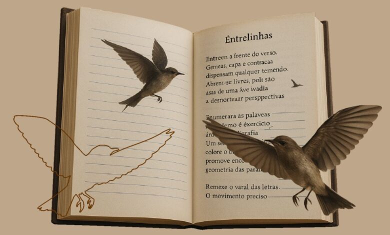 Repara a frente do verso.Gêmeas, capa e contracapadispensam qualquer remendo.Abrem-se livres, pois sãoasas de uma ave vadiaa desnortear perspectivas(no alto, embaixo, início, fim). Enumerar as palavrasno caderno é exercícioárduo de caligrafia.Um sem-número de