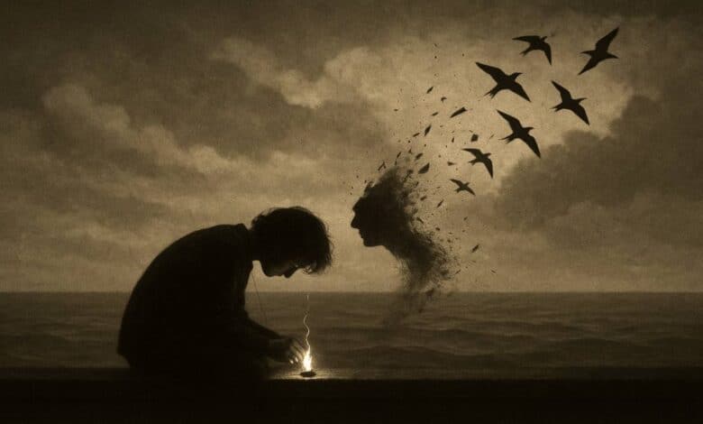Um laço e um nóe o engasgo e o silêncioa palavra muda amordaçada e nadado que fizera antes apagao fluxo do poema e da prosae as mãos frágeis do poeta-cronistatentam a todo custo segurar o textoo desejoa insensatez e a loucura e o rio de letrassílabas palavras-