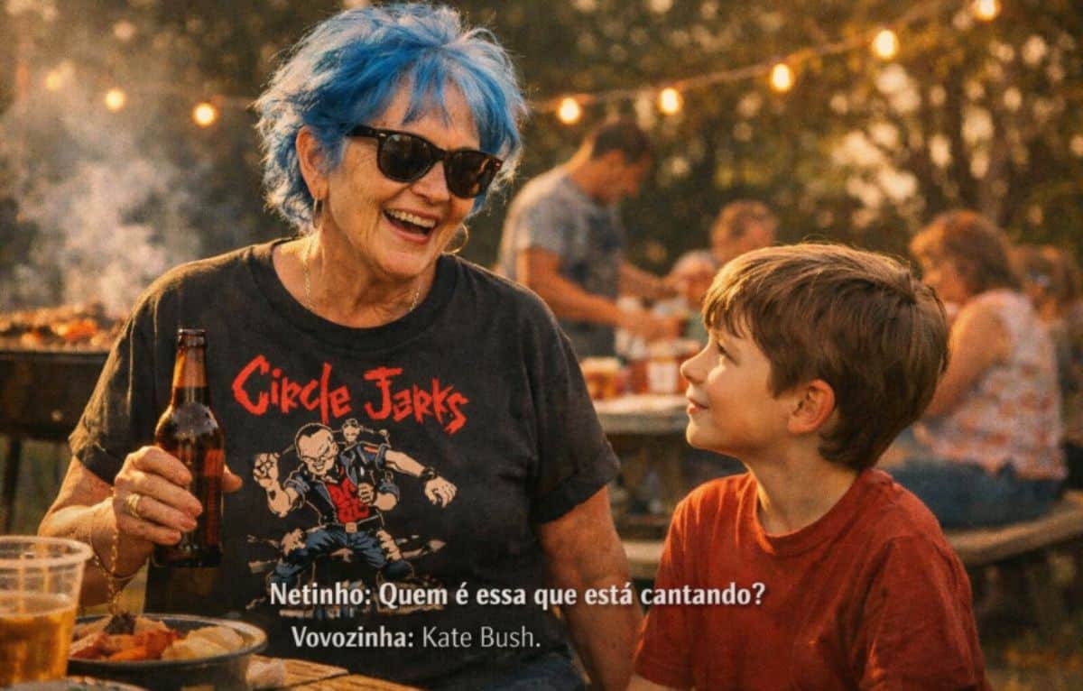 A avó tinha mesmo pintado o cabelo de azul, foi para o churrasco da família só para beber e usava uma camiseta do Circle Jerks