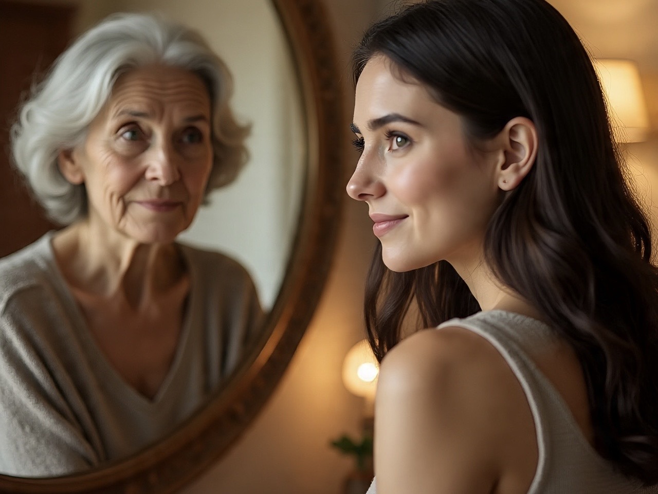 Quando eu cruzei a linha dos cinquenta, a estranha do espelho começou a me visitar com frequência. Lembro do nosso primeiro encontro, parecia o desafio dos sete erros: lábios finos, vincos na testa, derretimento das bochechas, bigode chinês, código de barras no pescoço, cabelo branco, manchas na pele. Um olhar rápido foi suficiente para encontrar as diferenças. Mesmo com a convivência forçada, não nos tornamos íntimas, tampouco próximas, mas, por sorte ou azar, fomos tolerantes uma com a outra.
