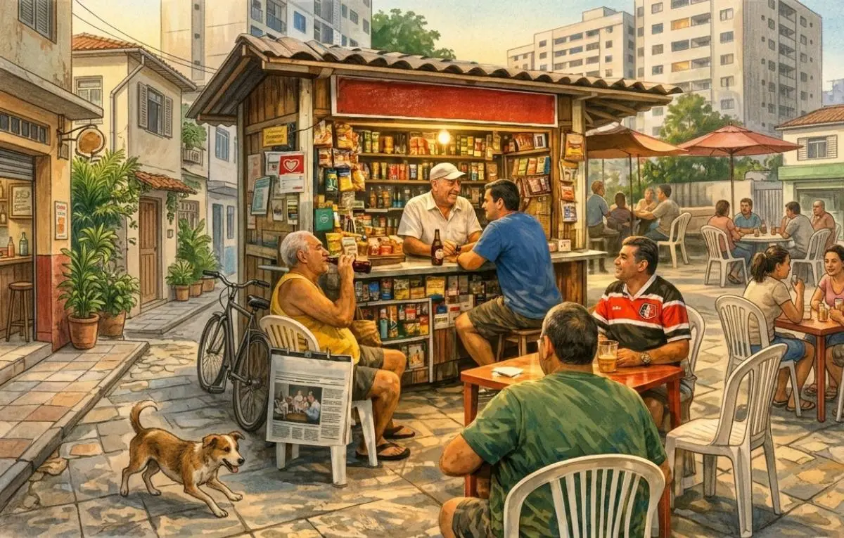 O menor acontecimento vira tema, tenha se sucedido em casa, no trabalho ou na família. Engana-se quem acha que comentar sobre o tempo é a melhor forma de puxar conversa, é o futebol; basta um “E o santinha, como vai?”, para – depois de receber um invariável “Tá difícil” – o papo se instalar. Assuntos vêm também pelas notícias, as dos jornais e das bocas, com cada um dando sua opinião. Há ainda a política, alguns a abordam fugindo, baixinho; outros possuem menor cautela, “Se Bolsonaro surgir aqui na barraca, eu não atendo ele”, bradou Leto certa vez.