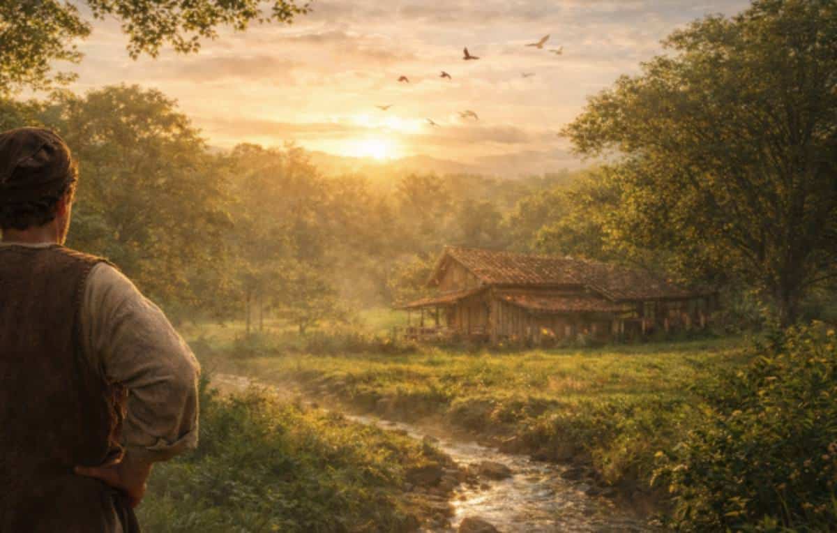 “Vende-se encantadora propriedade onde cantam os pássaros, ao amanhecer, no extenso arvoredo. É cortada por cristalinas e refrescantes águas de um ribeiro. A casa, banhada pelo sol nascente, oferece a sombra tranquila das tardes, na varanda”.