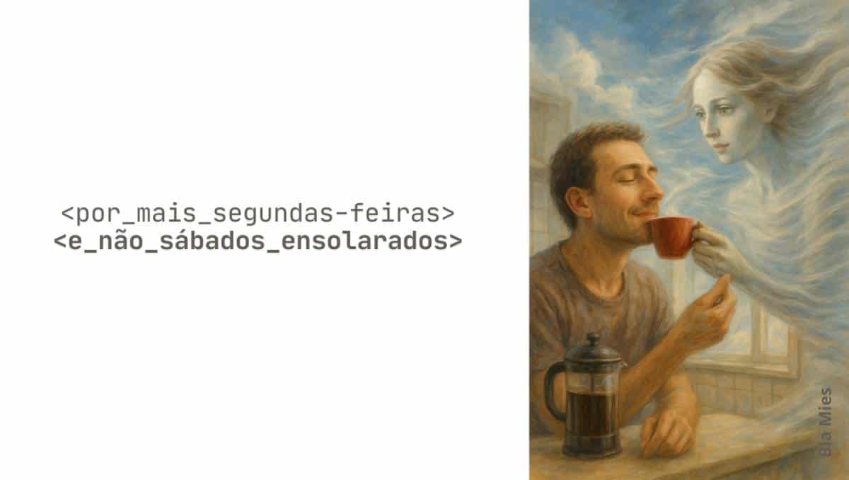 No começo, como em todos os começos antes, achei que o amor era isso: ficar leve. O café não esfria, ela me serve antes que isso aconteça. Encosta a cerâmica fria em meus lábios, me faz respirar diferente. É a minha cozinha. Não é a mesma cozinha. Ela joga os cabelos para um lado só com as pontas dos dedos — gesto comum, mas que suspende o ar da cozinha. O tempo pára, ou finge parar. Eu, que sinto e confundo sonho e acontecimento, observo: ela é mais ideia do que corpo. Parece feita do mesmo material das manhãs que não voltam. Há nela um quê de desenho inacabado: o contorno treme, a pele é quase vento, o olhar pesa mais do que o rosto. E, mesmo assim, sorri — um sorriso de quem se desculpa por existir e por não conseguir deixar de existir.