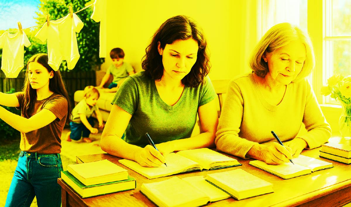 Estudar, lavar roupas, quatro filhos , ajudar nas tarefas, fraldas nos varais como bandeiras brancas ao vento, vacinas, piolhos, resfriados e espinhos no pé, estudar, pesquisar, ler, cumprir prazos, apagar a luz, cair na cama e dormir.